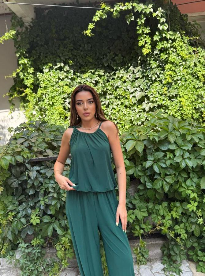 Kadın Omuz Askılı Döküm Detay Salaş Sandy Kumaş Tulum