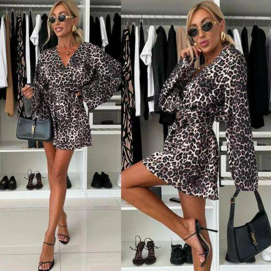 Kadın Salaş Kol Kruvaze Yaka Zebra Desen şort Tulum