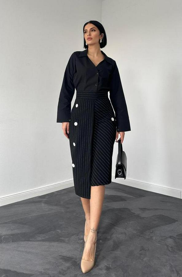 AnasayfaTüm ÜrünlerSalopet & TulumTulumSiyah Çizgili Poliviskon Etek