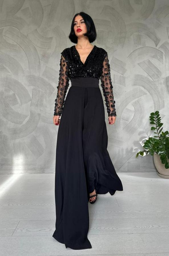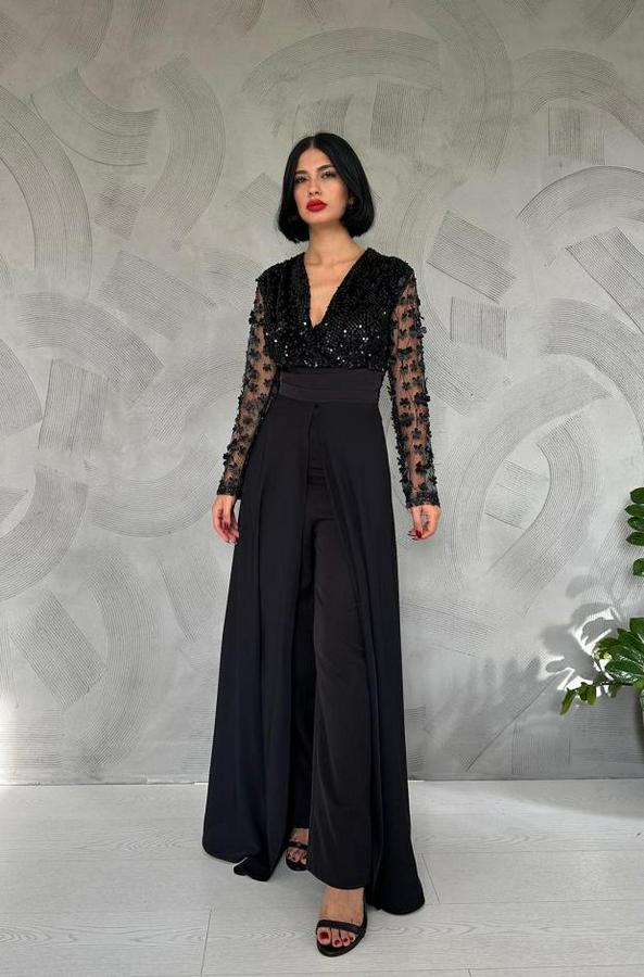 AnasayfaTüm ÜrünlerSalopet & TulumTulumSiyah Kolları Tül Etekli Tulum
