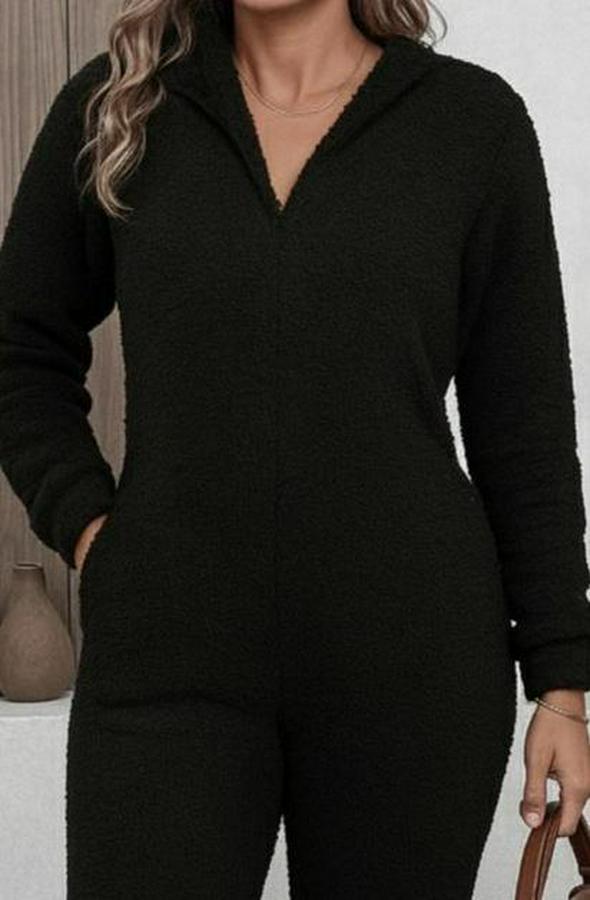 Kadın Uzun Kollu Kapüşonlu Tavşan Kulak Detaylı Peluş Tulum