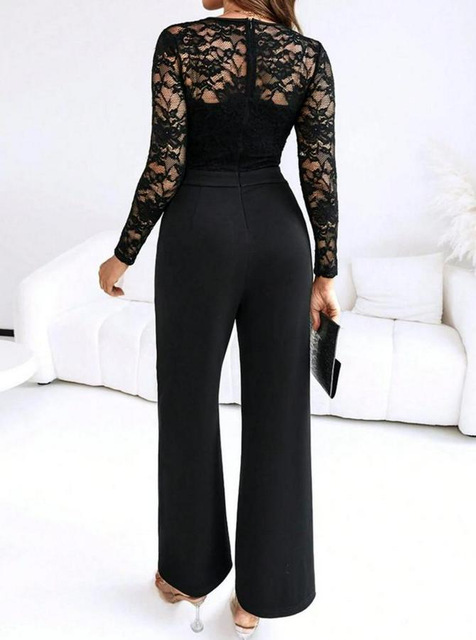 Uzun Kollu Kruvaze Yakalı Dantelli Önünde Toka Detaylı Uzun Ithal Krep Tulum