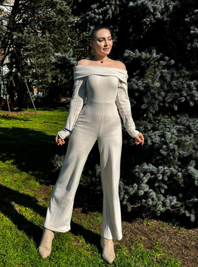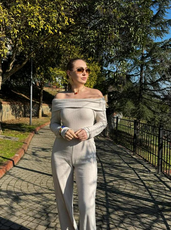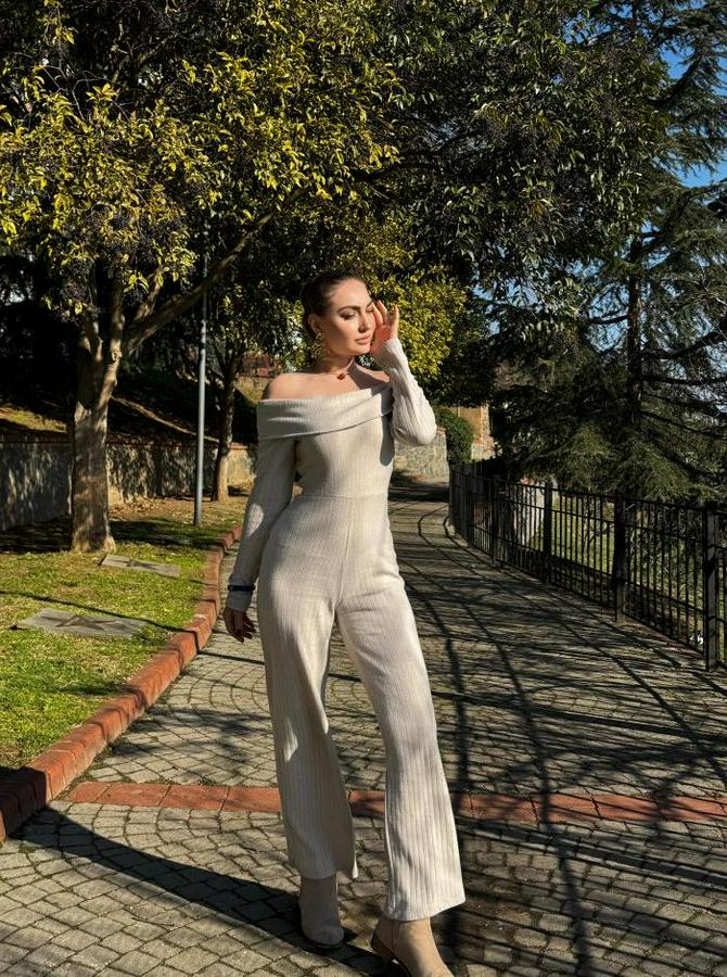 Kadın Uzun Kollu Madonna Yaka şardonlu Kaşkorse Tulum