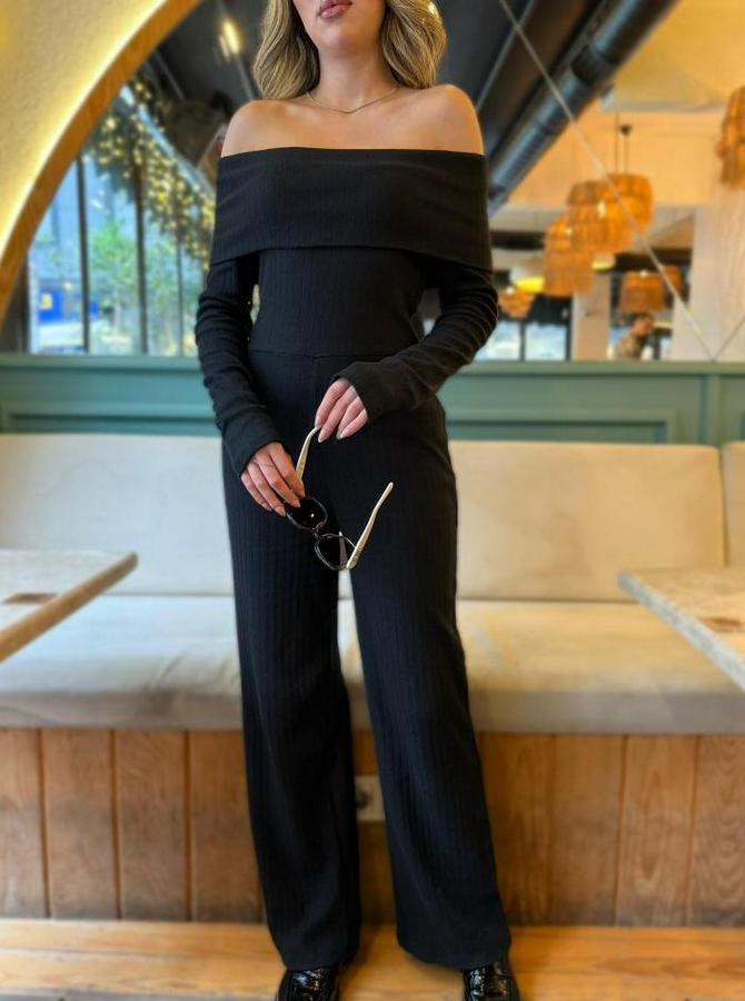 Kadın Uzun Kollu Madonna Yaka şardonlu Kaşkorse Tulum