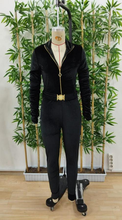 Kadın Uzun Kollu önden Fermuar Detaylı Kemerli Kadife Tulum