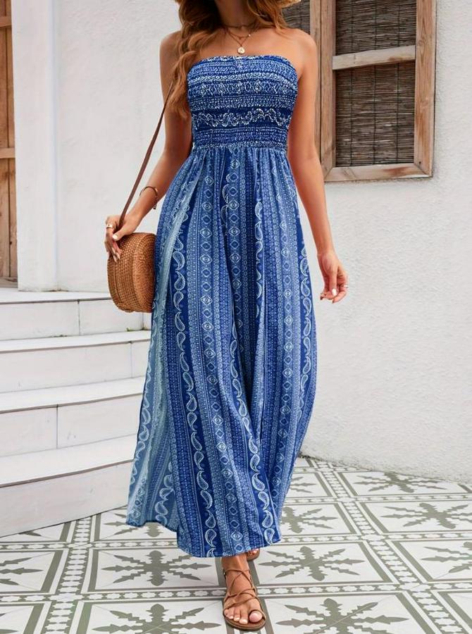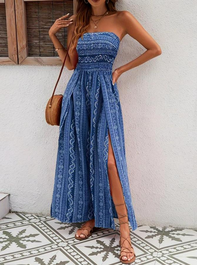Kadın Yakası Gipe Detaylı önden Yırtmaç Detaylı Desenli Süprem Pantolunetek Tulum