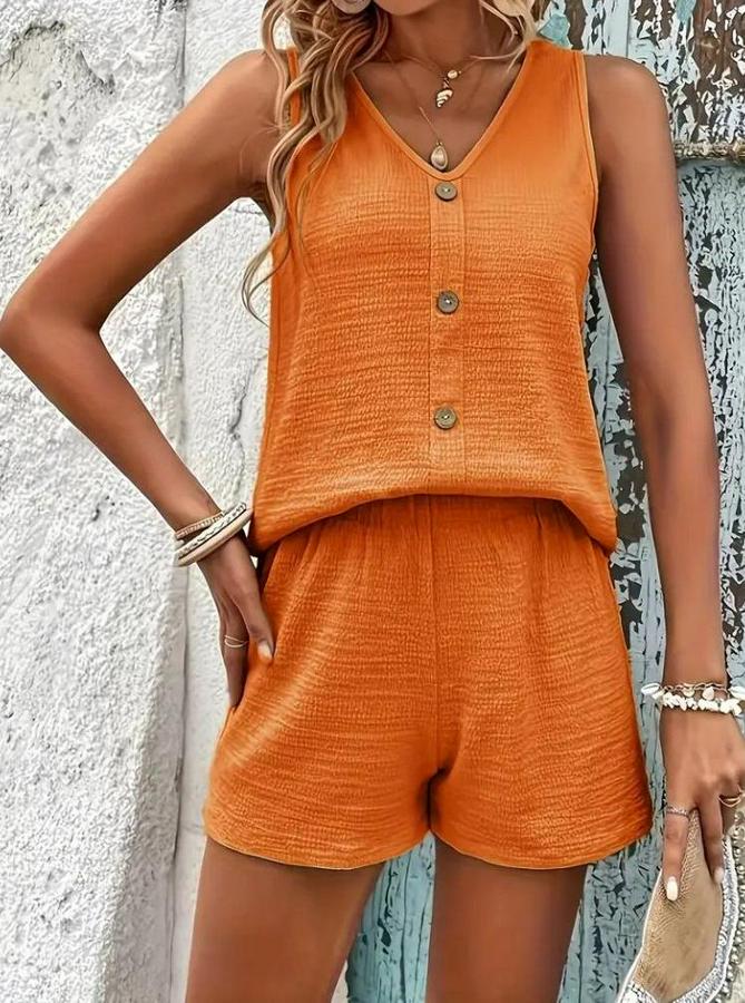 Askılı Kolsuz V Yakalı Önden Düğmeli Bürümcük Bluz Ve Short Ikili Takım