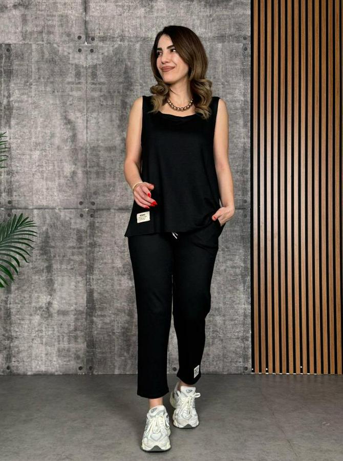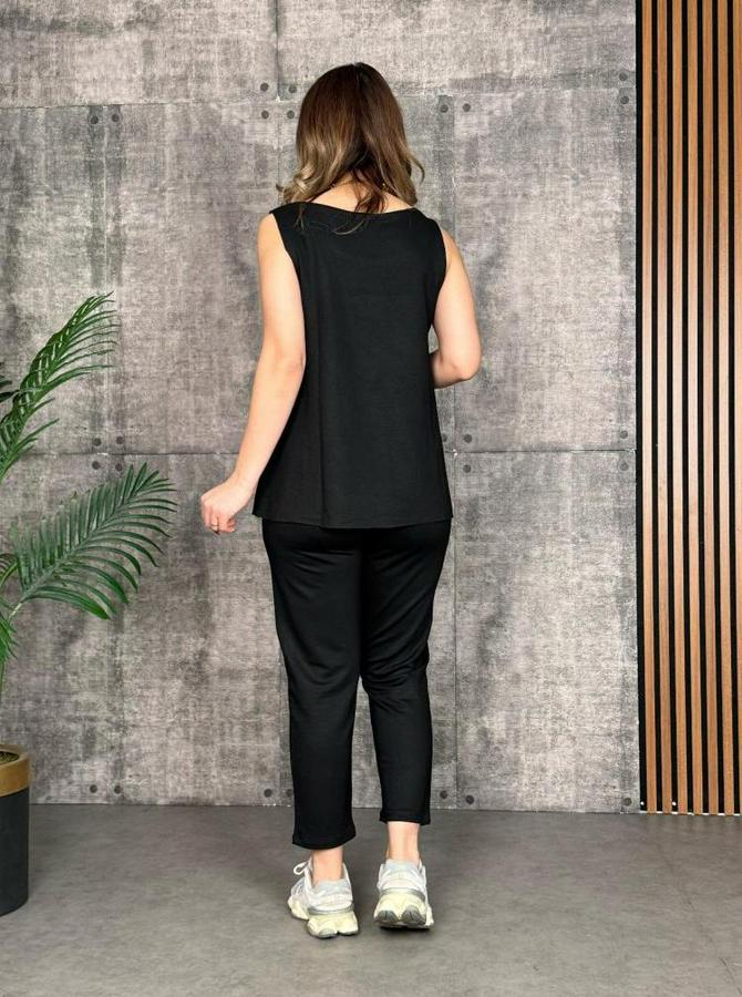 Askılı Yuvarlak Yaka Viskon Iki Iplik Bluz Ve Eşofman Altı Ikili Takım