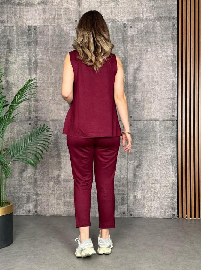 Askılı Yuvarlak Yaka Viskon Iki Iplik Bluz Ve Eşofman Altı Ikili Takım