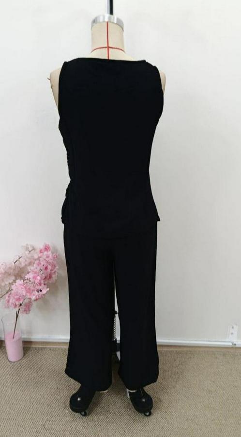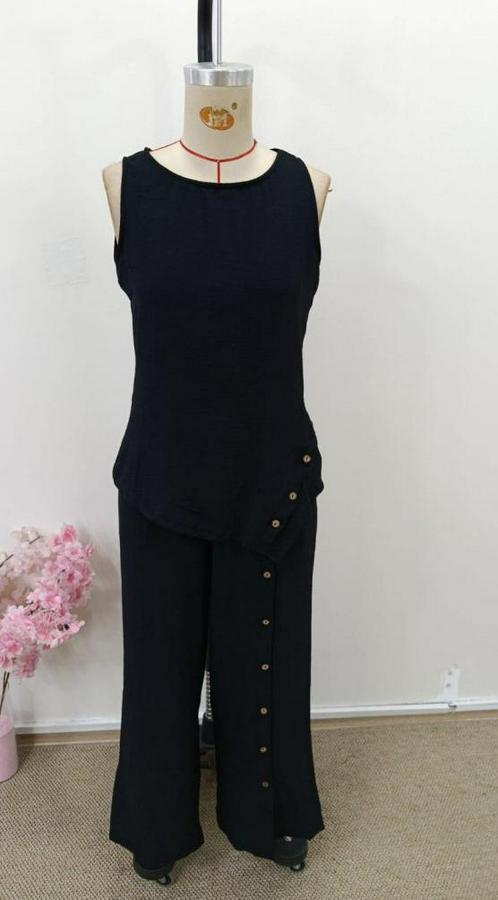 Kadın Askılı Yuvarlak Yakalı önü Asimetrik Detaylı Düğmeli Aerobin Bluz Ve Pantolon Ikili Takım