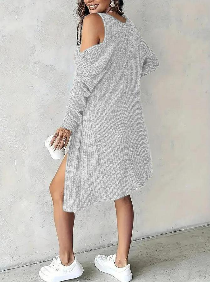 Askılı Yuvarlak Yakalı Önü Düğmeli Şardonlu Kaşkorse Mini Elbise Ve Kısa Ceket