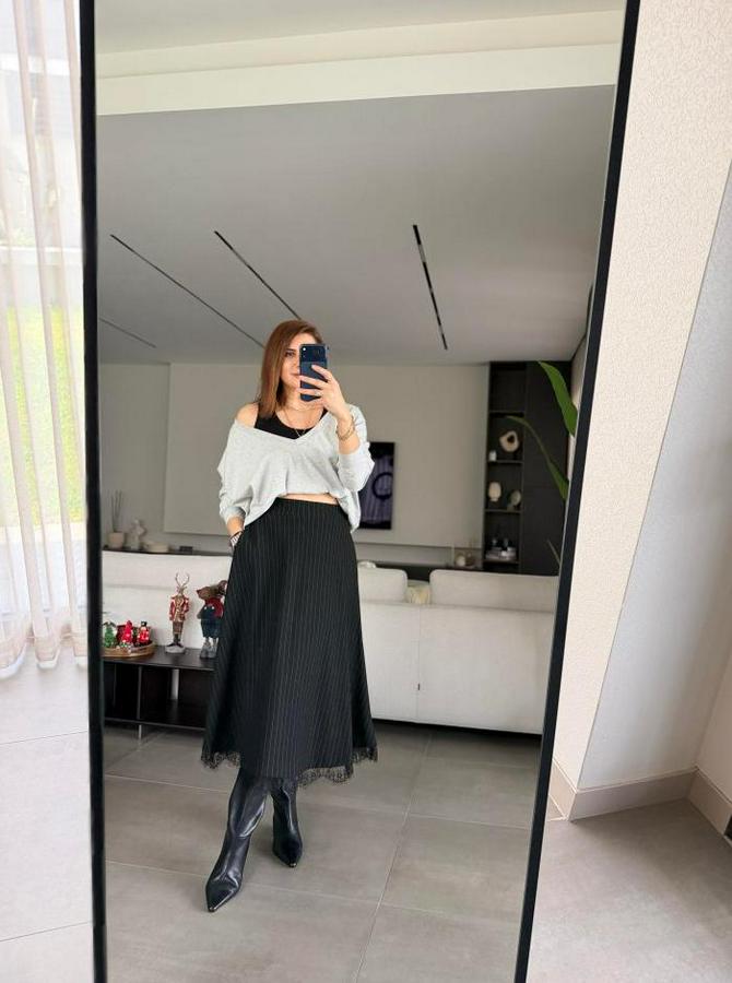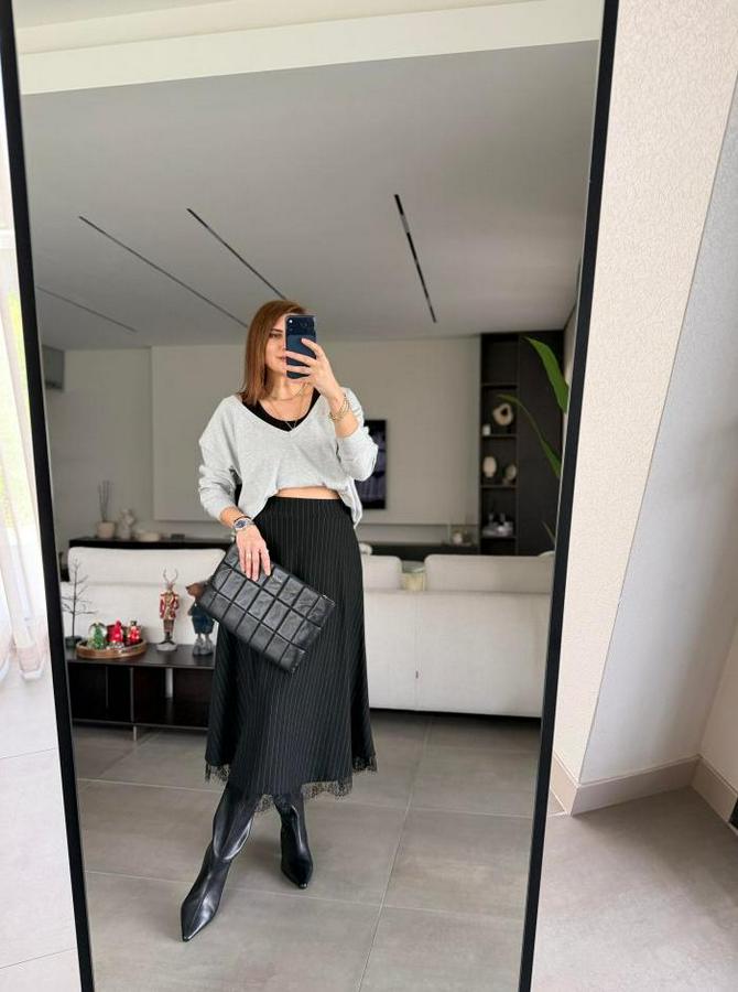 Modelin Ölçüleri: Boy:165, Kg:55, Göğüs:90, Bel:72, Kalça: 100