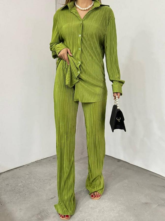 AnasayfaTüm ÜrünlerTakımlarAlt - Üst TakımBayrama Özel Düşük Omuz Salaş Gömlek Ve Yırtmaç Detay Ispanyol Paça Pantolon