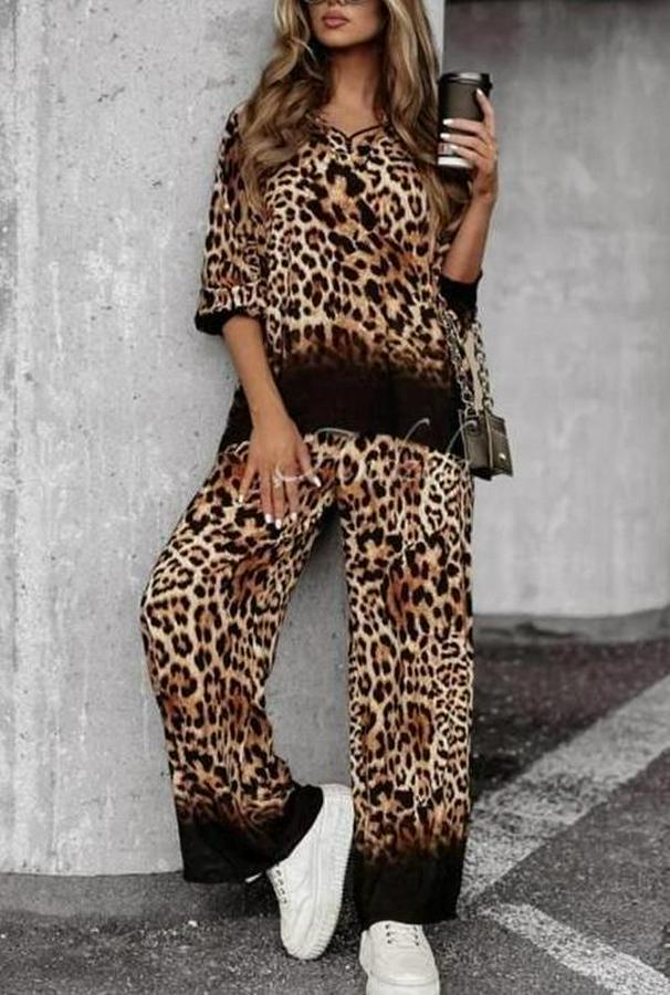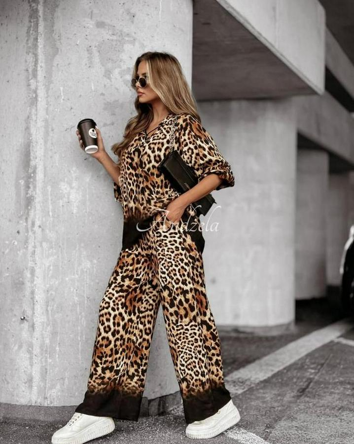 Dalgıç Kumaş Leopar Desenli Fermuar Detaylı Ikili Tamım