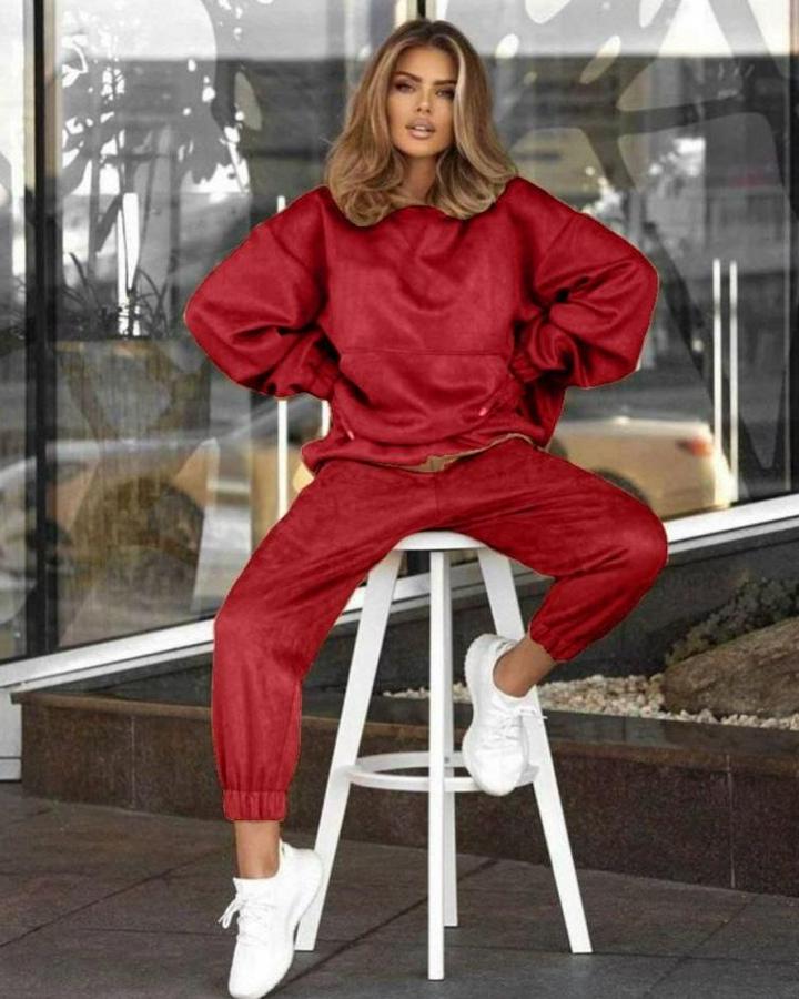Dalgıç Süet Kumaş Kapüşon Ve Kanguru Cep Detaylı Ikili Takım