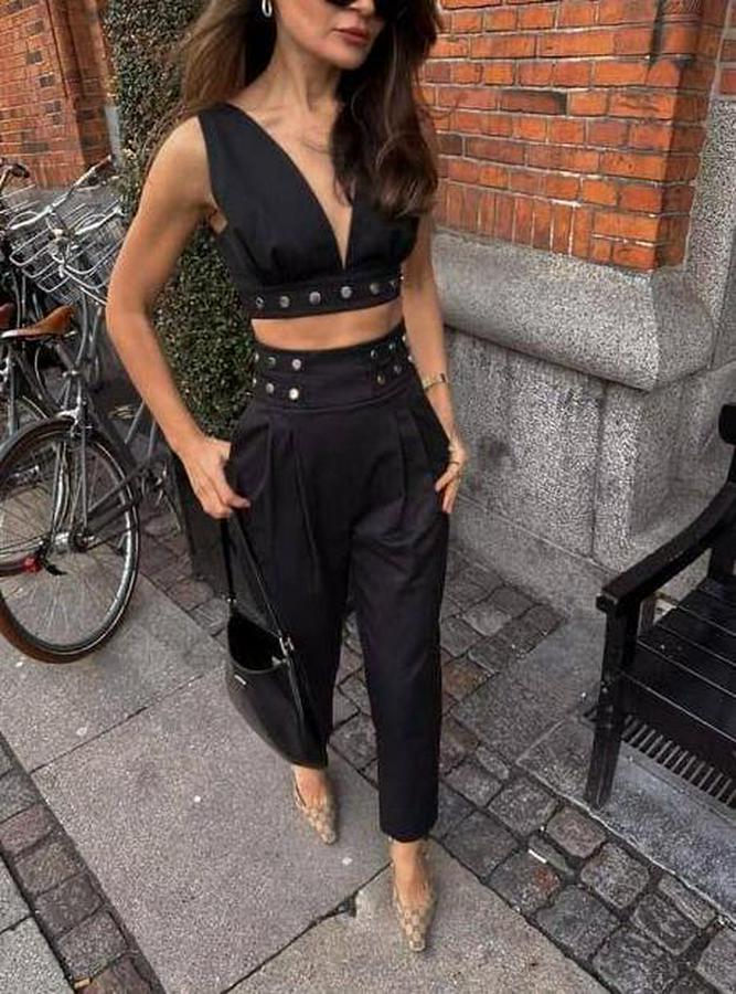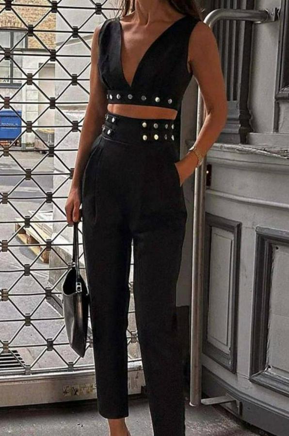 Kadın Double Krep Kumaş Düğme Aksesuar Detaylı Takım