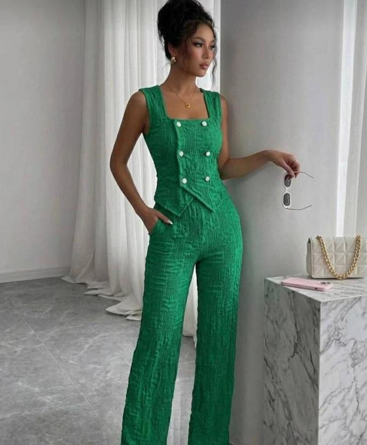 Kadın Düğmeli Bürümcük Kumaş Takım