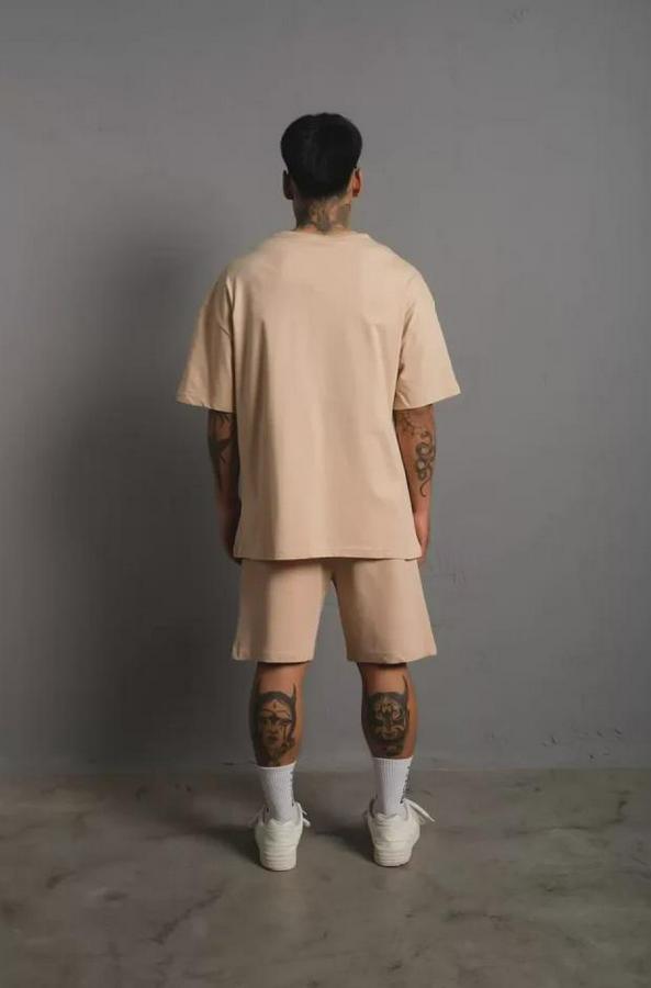 Erkek Alev Baskılı İkili Şortlu Takım - Bej