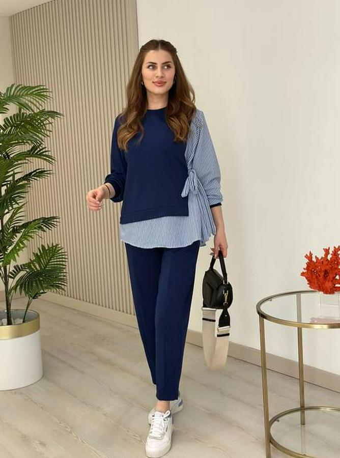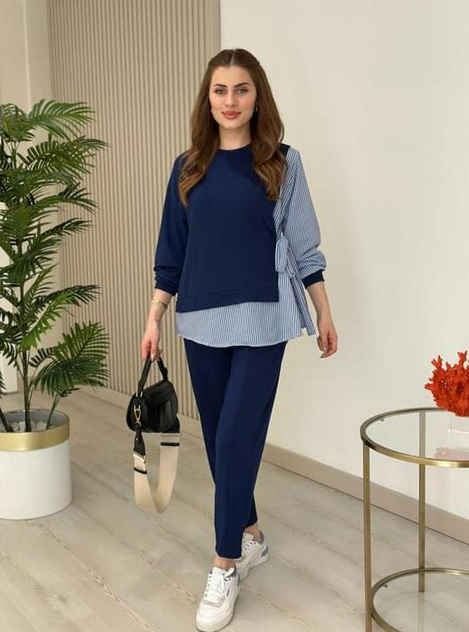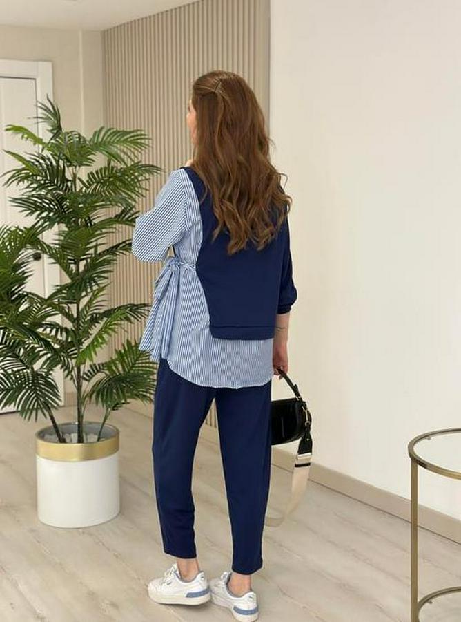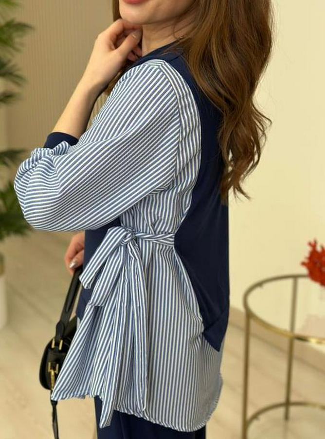 Gömlek Detay Çizgili Yandan Bağlamalı Ikili Takım