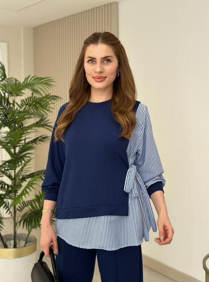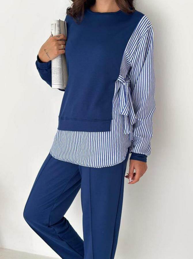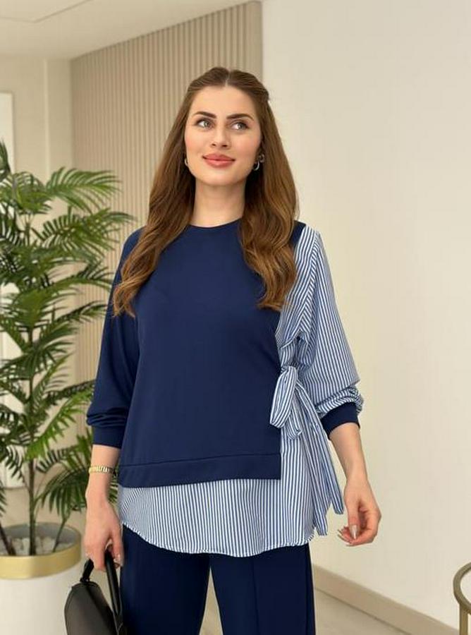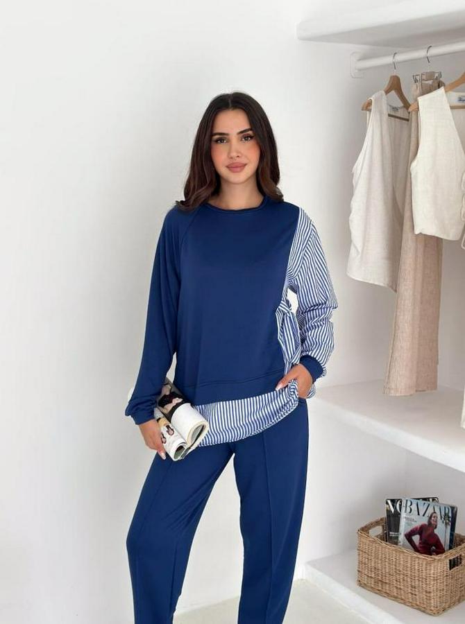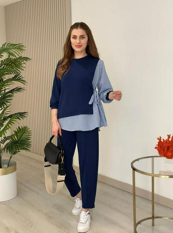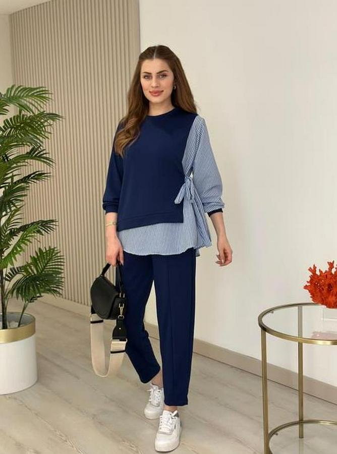 Kadın Gömlek Detay çizgili Yandan Bağlamalı Ikili Takım