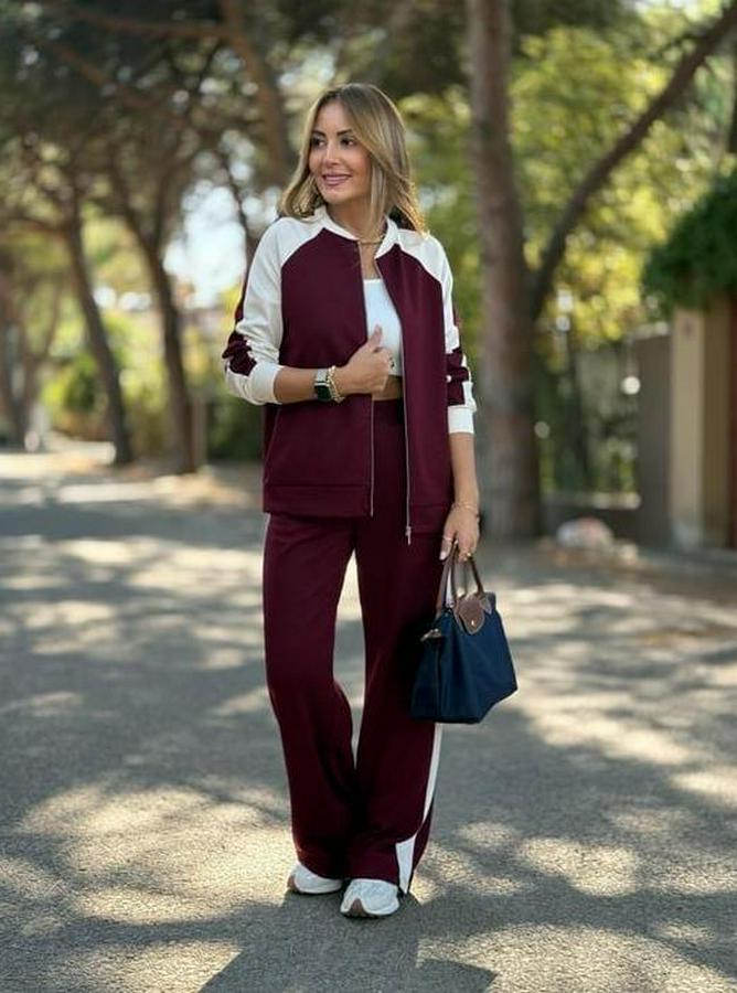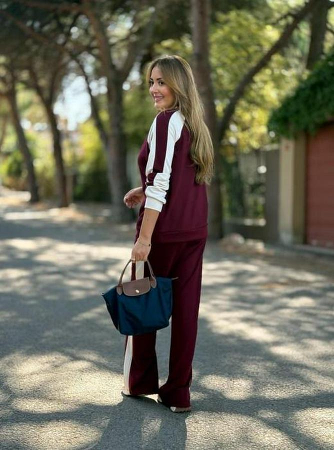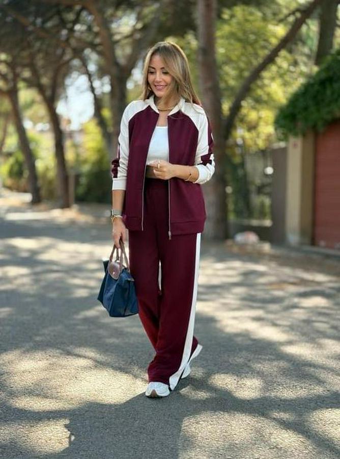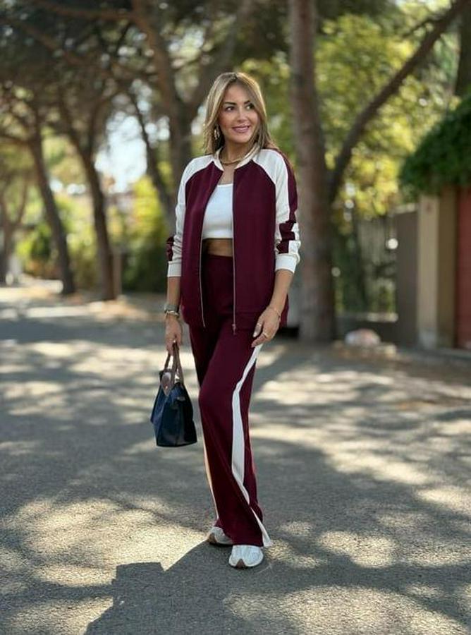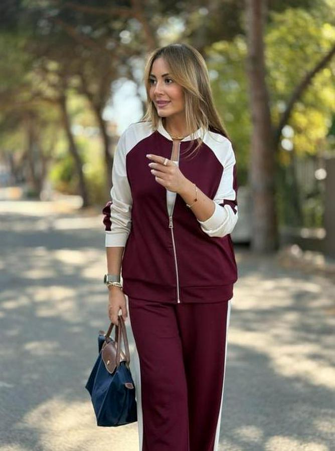 Hakim Yaka Şerit Detay Hırka Ve Bol Paça Pantolon Ikili Takım