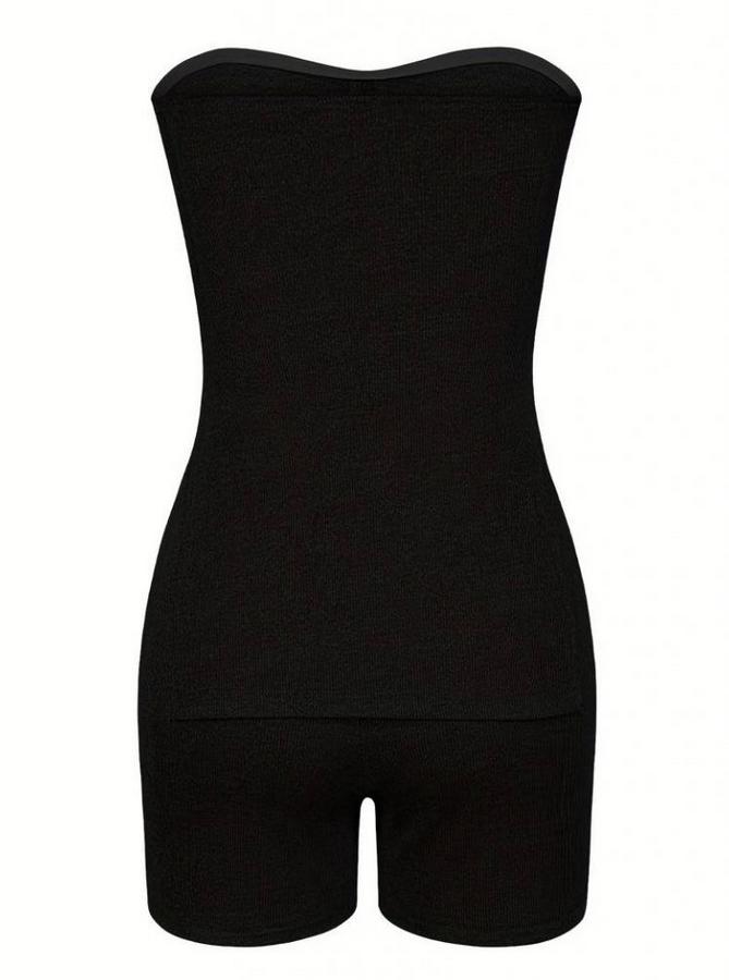 Iki Yanı Yırtmaçlı Straplez Bluz Şort Tayt Kaşkorse Ikili Takım