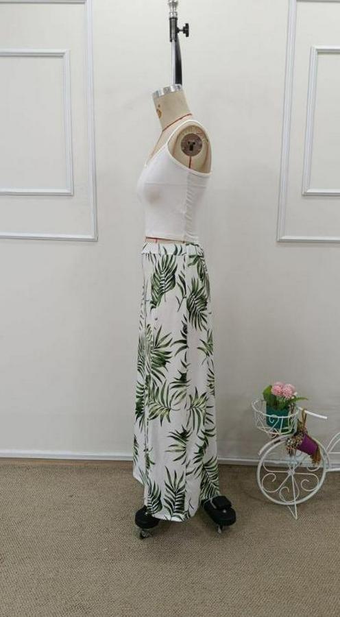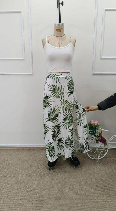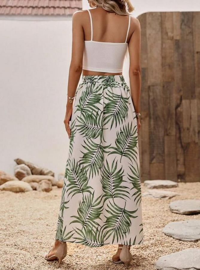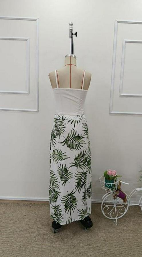 Kadın Ip Askılı Yuvarlak Yaka Kısa Viskon Bluz Ve Desenli Yırtmaçlı Süprem Etek Ikili Takım