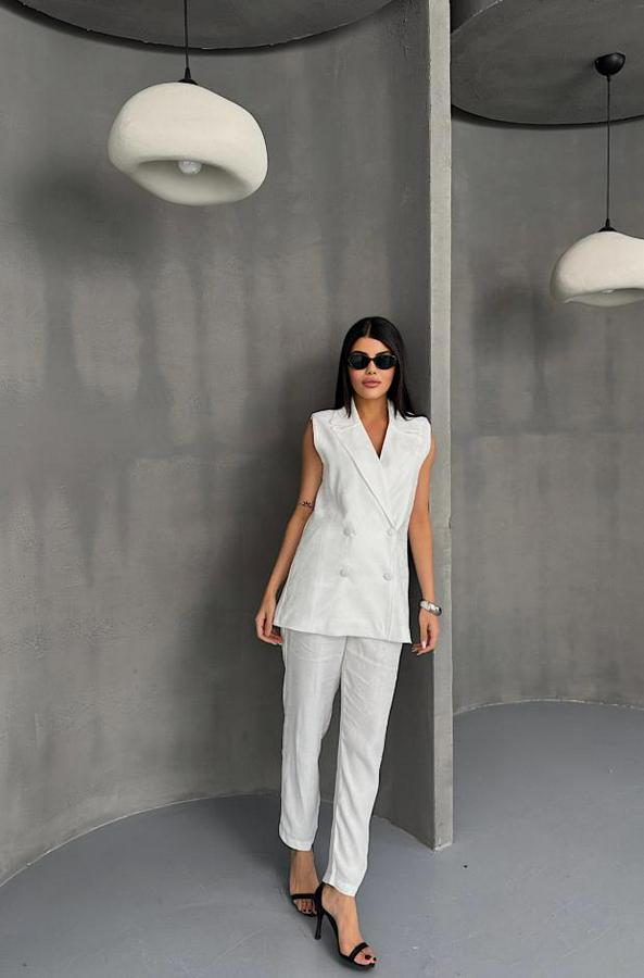 JAKAR KUMAŞ YELEK - PANTOLON TAKIM - Beyaz
