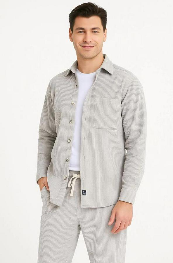 Erkek Kadife Oversize Takım – Gömlek Ve Pantolon İkili Set Füme Corduroy Şıklığı, Rahat Ve Zarif Duruş Yumuşak Dokulu Kadife Kumaş, Düğmeli Gömlek Üst Ve Lastikli Pantolon Alt Parça Ile Gün Boyu Konfor- Gri