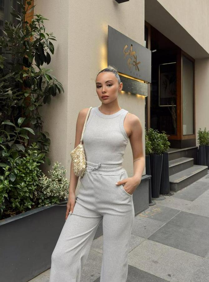 Kaşkorse Kumaş Atlet Ve Yüksek Bel Bol Paça Pantolon Ikili Takım