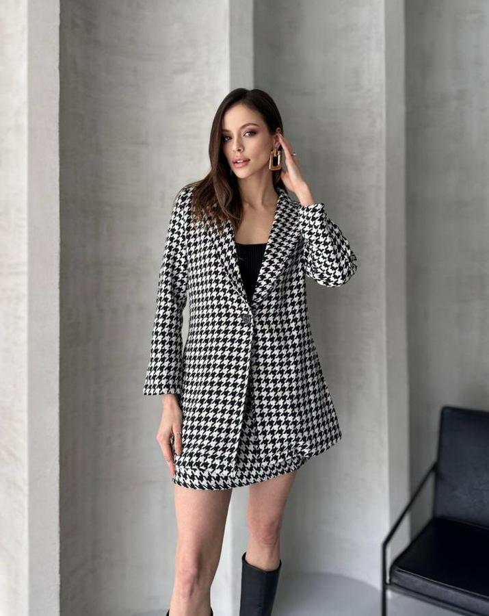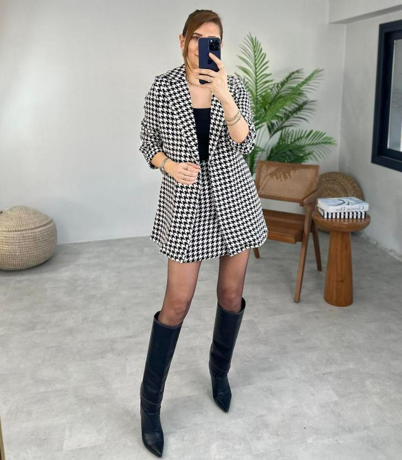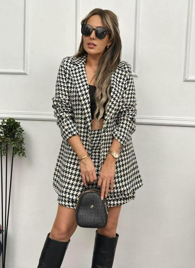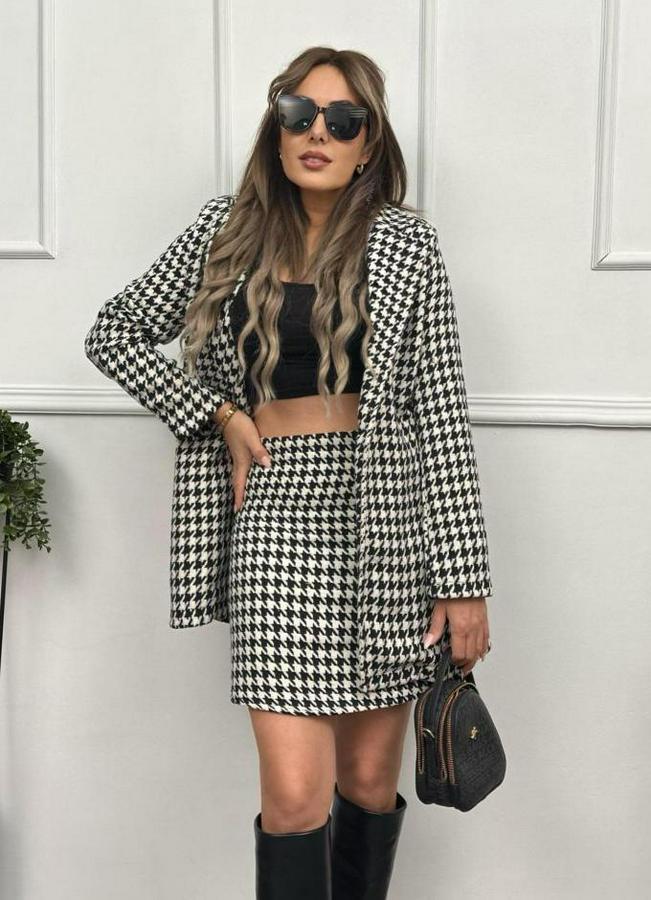 Kadın Kazayağı Desen Vatka Detay Kaban Ve Yüksek Bel Etek Ikili Takım