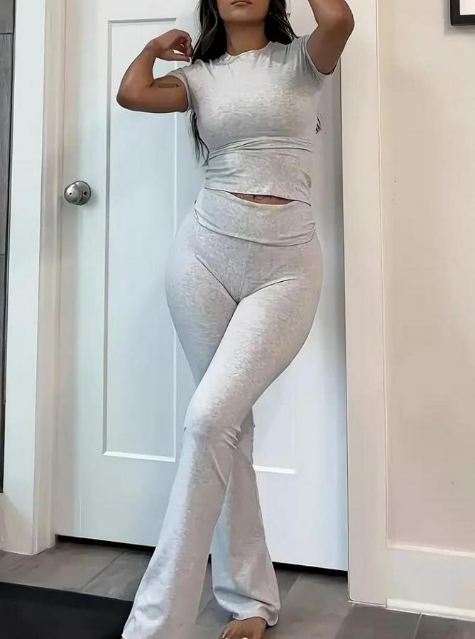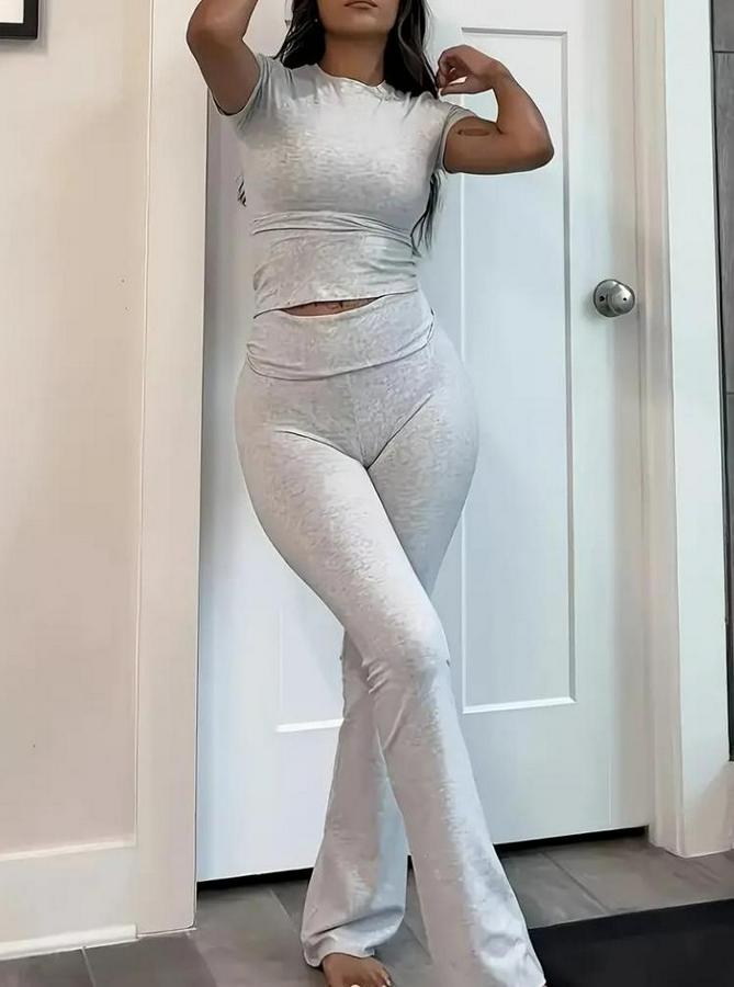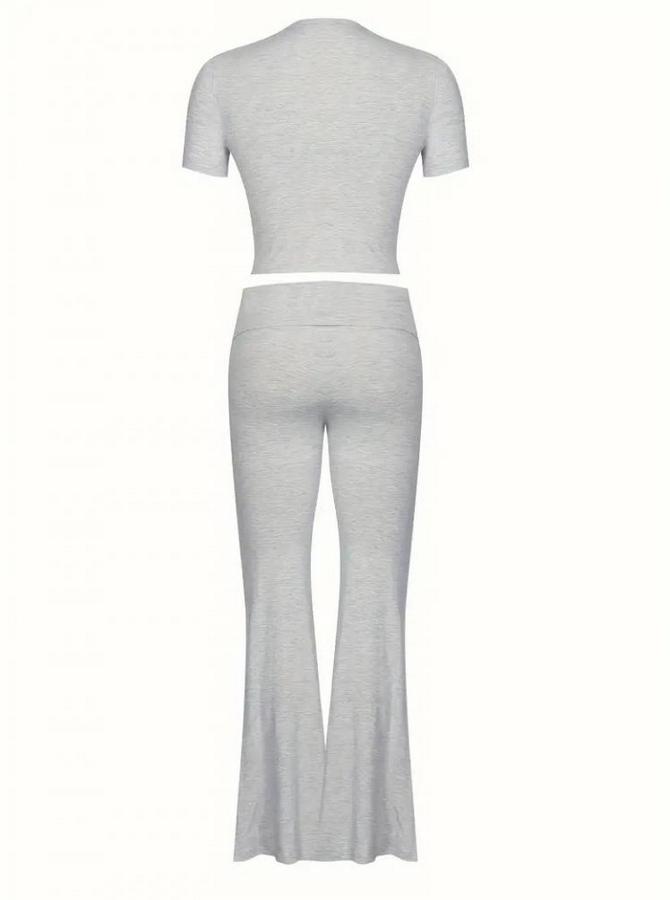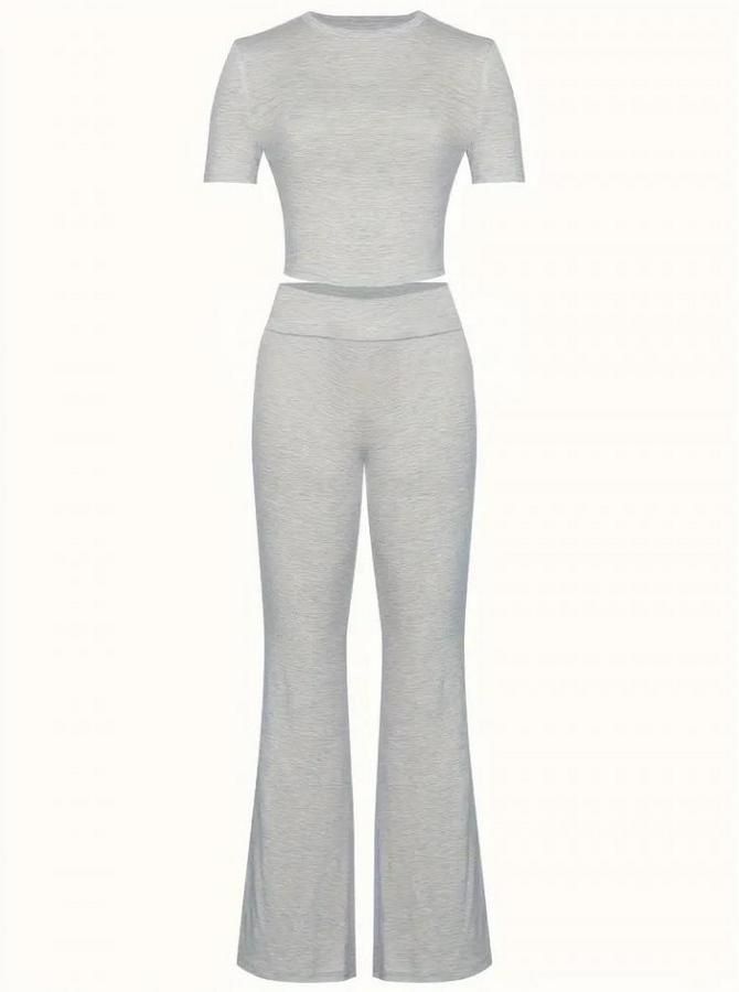 Kısa Kollu Bisiklet Yaka Alt Ispanyol Paça Viskon Ikili Takım