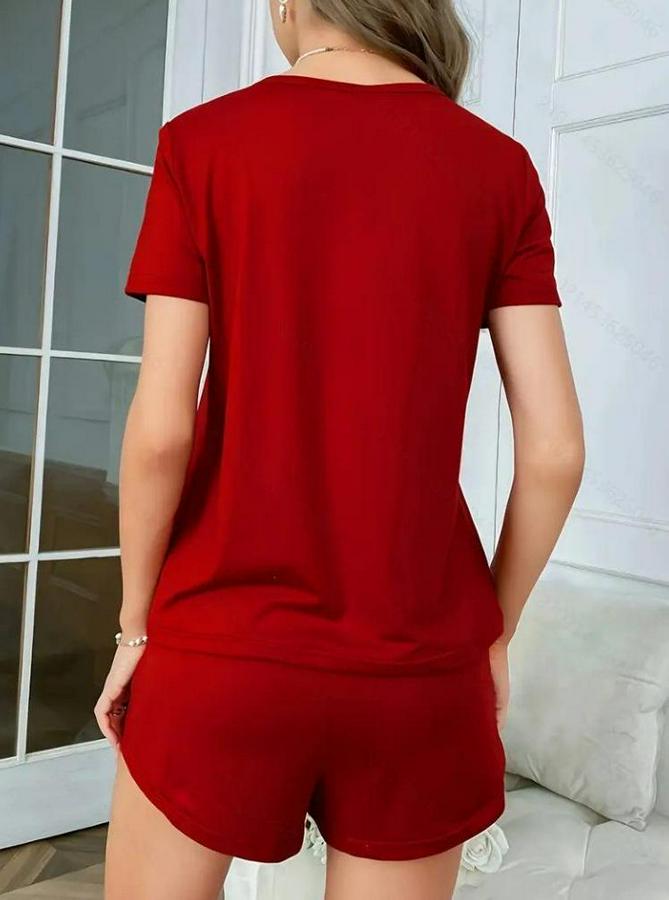 Kadın Kısa Kollu Bisiklet Yaka Baskılı Viskon Bluz Ve şort Ikili Takım