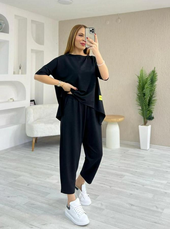 AnasayfaTüm ÜrünlerTakımlarAlt - Üst TakımKısa Kollu Bisiklet Yaka Viskon Iki Iplik Bluz Ve Pantolon Ikili Takım