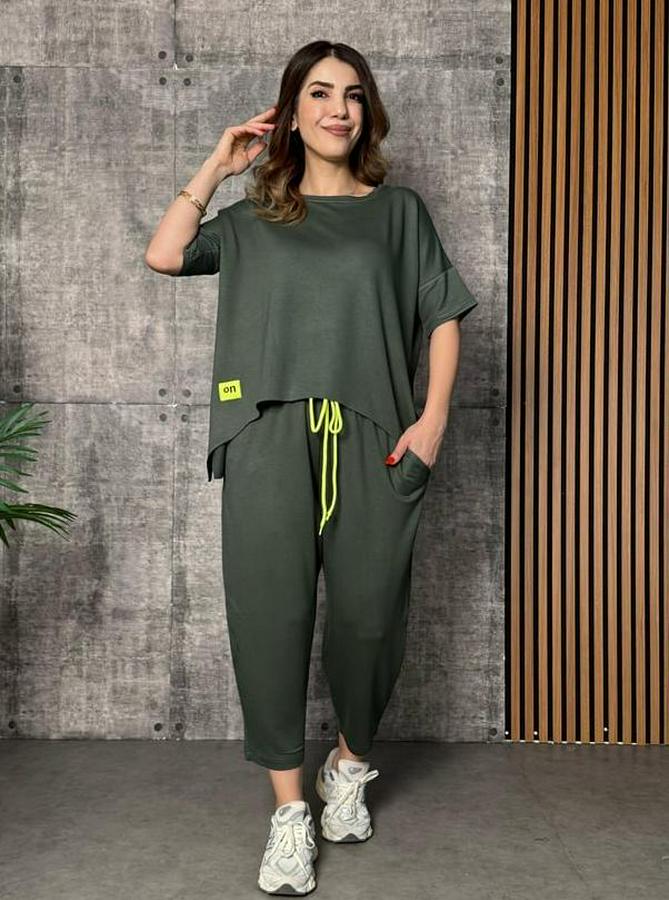 Kısa Kollu Bisiklet Yaka Viskon Iki Iplik Bluz Ve Pantolon Ikili Takım
