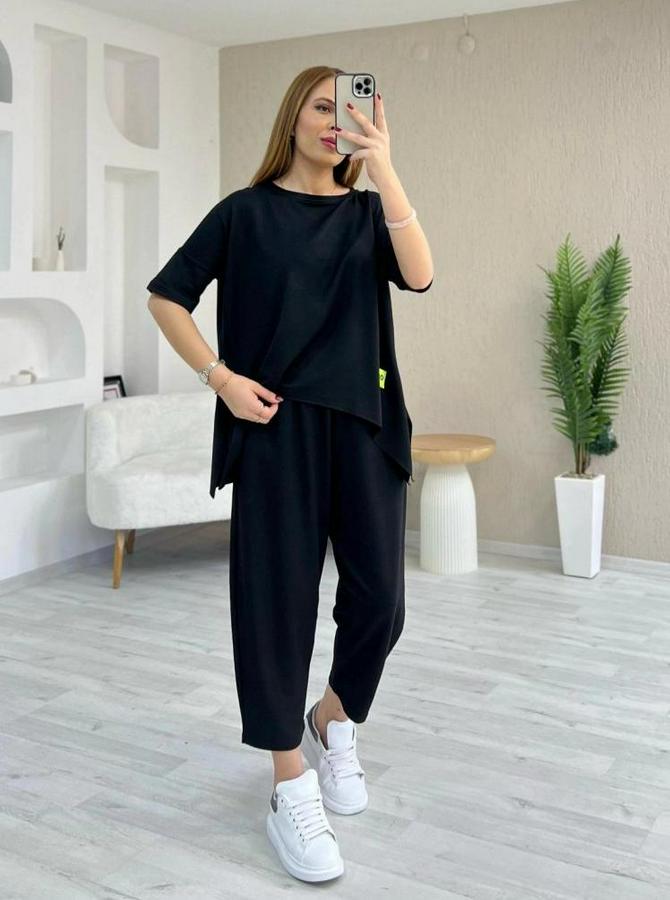 Kısa Kollu Bisiklet Yaka Viskon Iki Iplik Bluz Ve Pantolon Ikili Takım