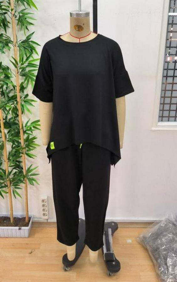 AnasayfaTüm ÜrünlerTakımlarAlt - Üst TakımKısa Kollu Bisiklet Yaka Viskon Iki Iplik Bluz Ve Pantolon Ikili Takım