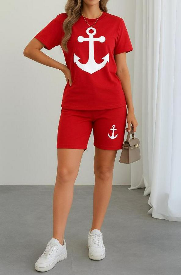 Kısa Kollu Çapa Baskılı Viskon Ikili Takım