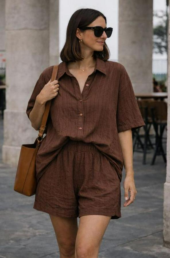 AnasayfaTüm ÜrünlerTakımlarAlt - Üst TakımKısa Kollu Çizgili Modal Kumaş Gömlek Ve Yüksek Bel Lastik Detay Şort Ikili Takım