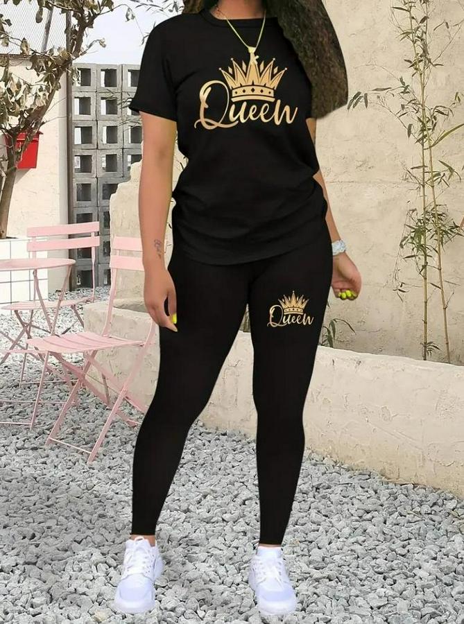 Kadın Kısa Kollu Queen Baskı Viskon Ikili Takım