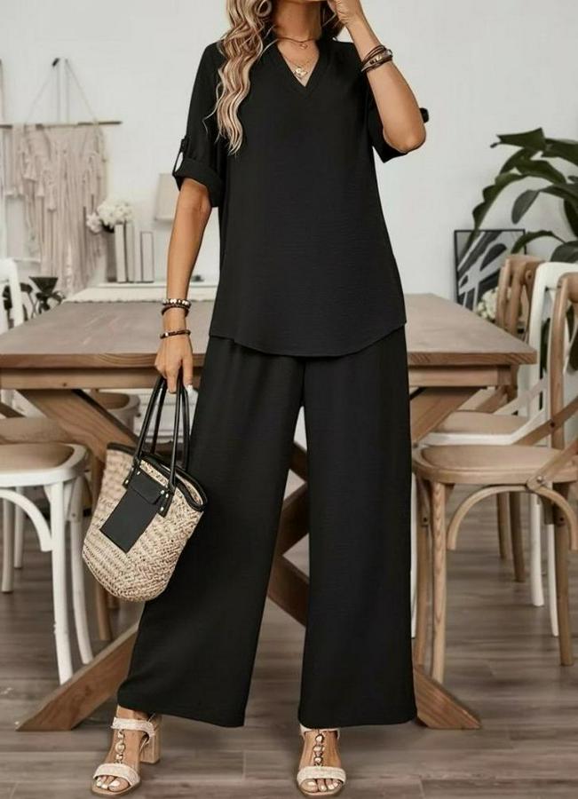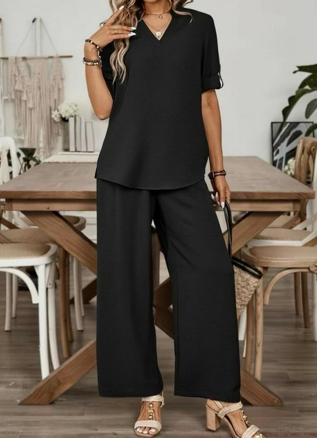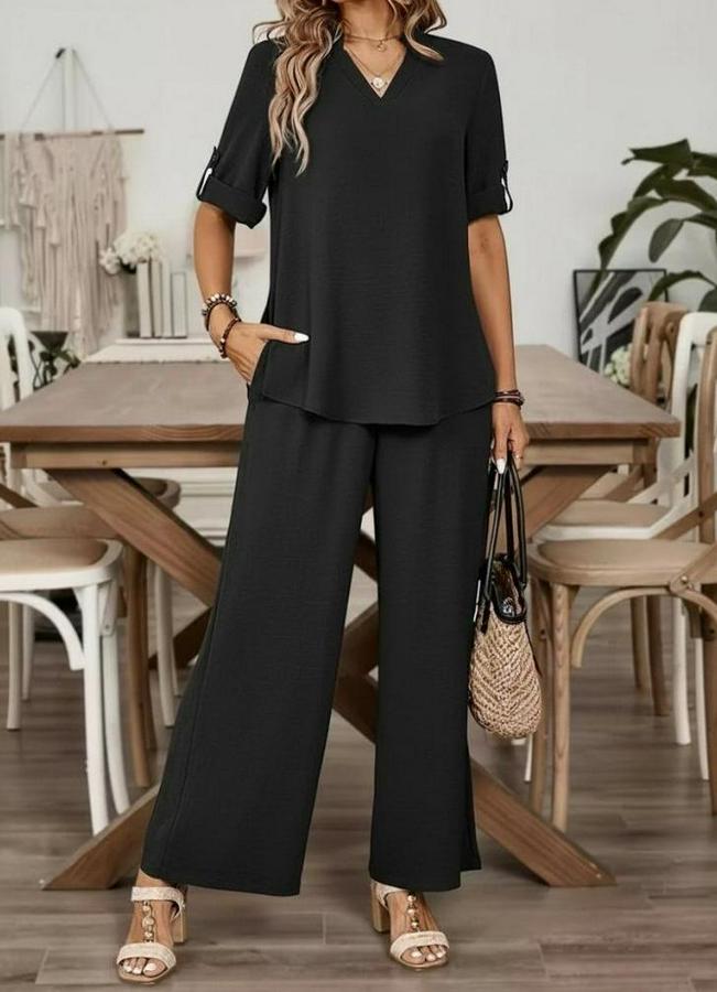 Kadın Kısa Kollu V Yakalı Aerobin Bluz Ve Pantolon Ikili Takım