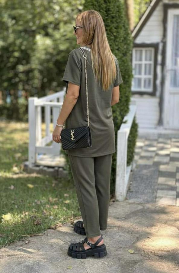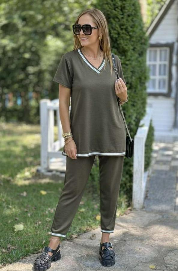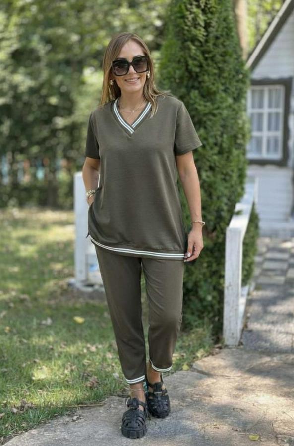 Kısa Kollu V Yakalı Iki Iplik Bluz Ve Pantolon Ikili Takım