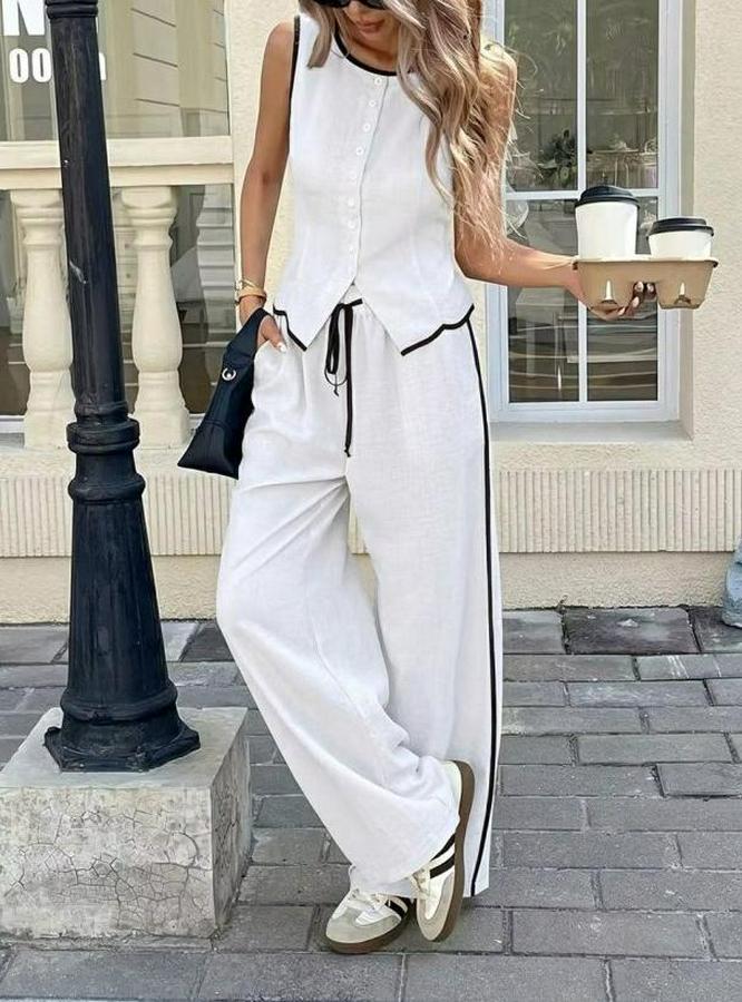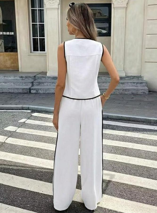 Kadın Kolsuz önü Düğmeli Yelek Ve Pantolon Ikili Takım
