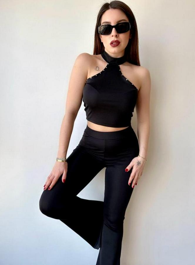 Mikro Kumaş Taş Detaylı Bluz Ve Ispanyol Paça Pantolon Ikili Takım Fırsat Ürün