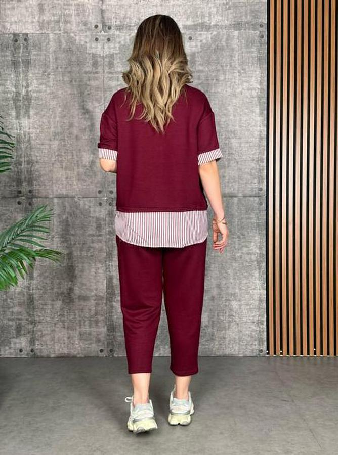 Modal Kumaş Çizgili Gömlek Yaka Ikili Takım