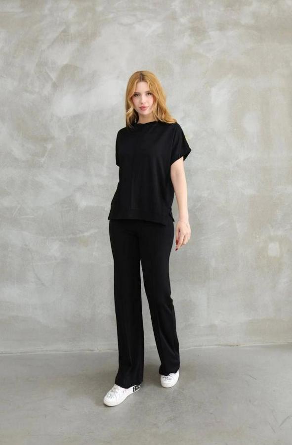 Osy Modal Yumuşak Dokulu Kumaş Bisiklet Yaka Kısa Kollu Takım - Siyah