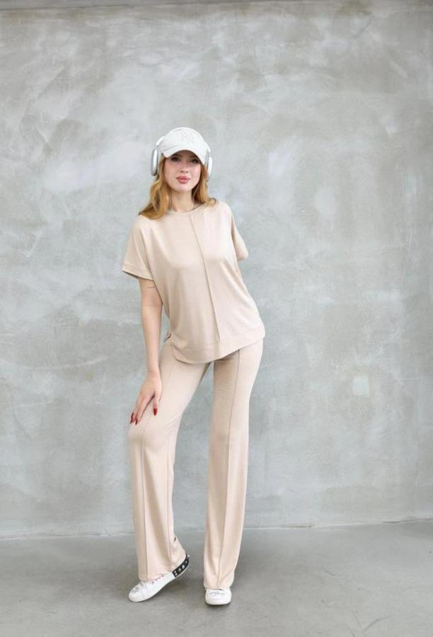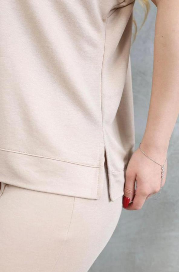 Osy Modal Yumuşak Dokulu Kumaş Bisiklet Yaka Kısa Kollu Takım - Bej