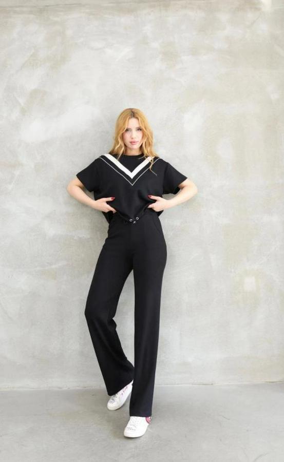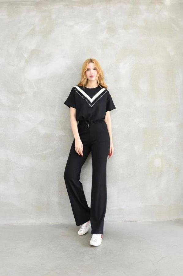 Osy Modal Yumuşak Dokulu Kumaş Bisiklet Yaka Parçalı Detaylı Kısa Kollu Takım - Siyah