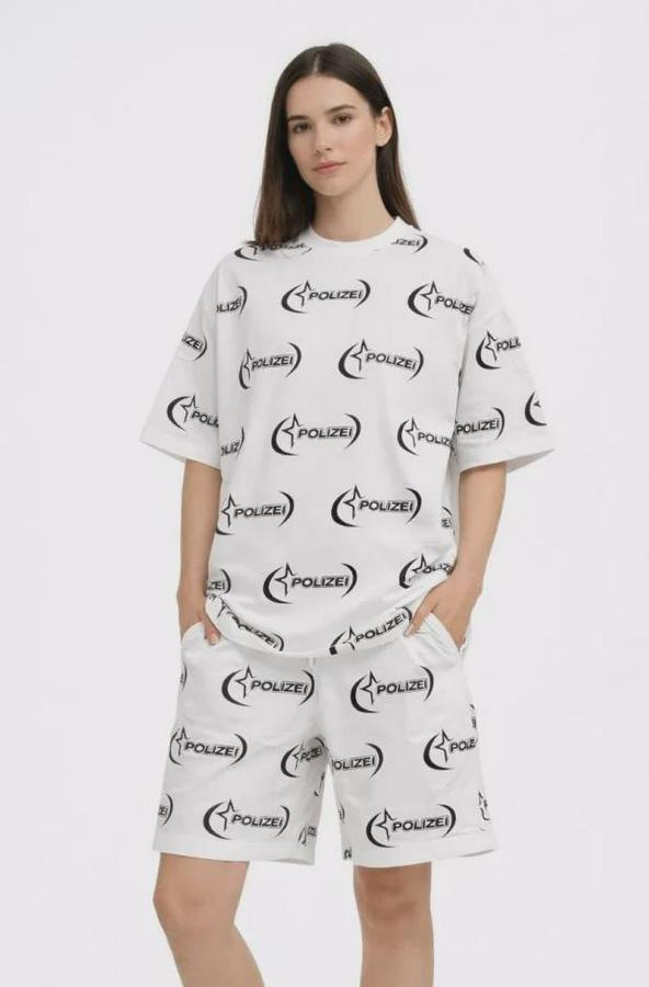 Oversize Ön Ve Arka Baskılı Tişört Şort Takım Rahat Kalıp Yazlık Günlük Kombin - Beyaz