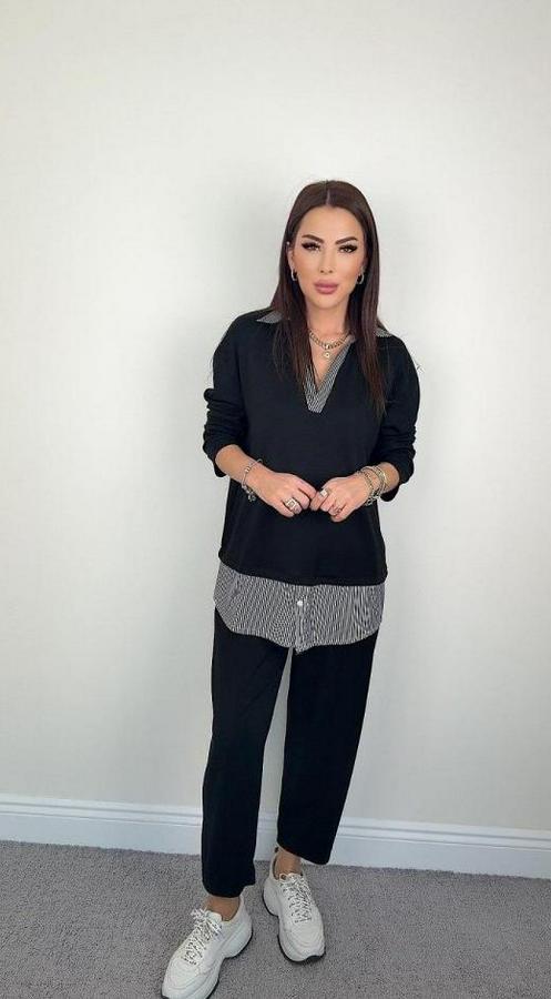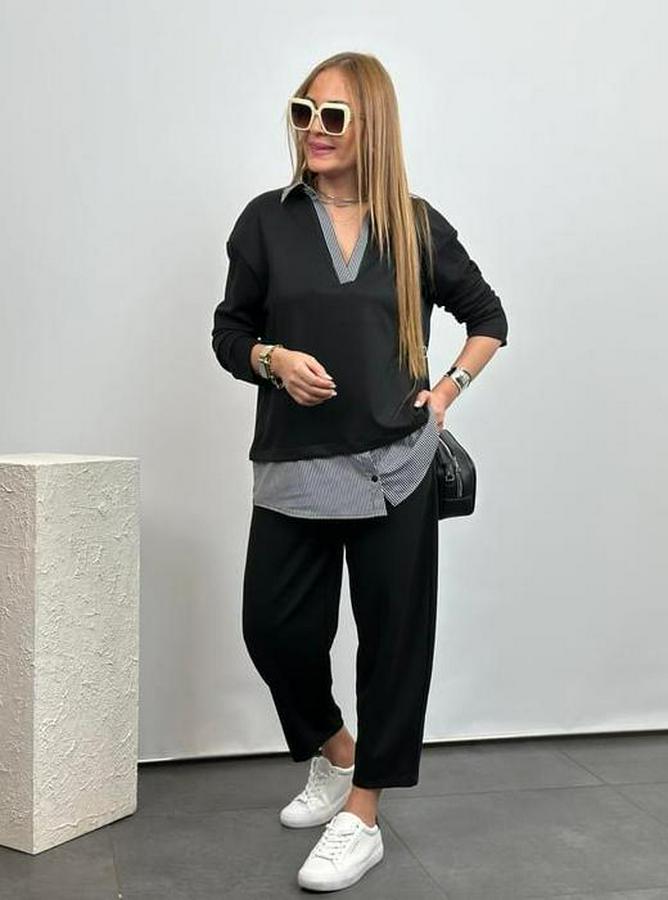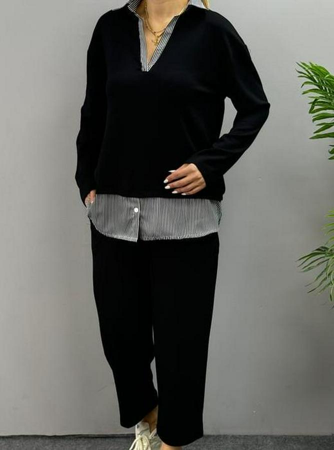 AnasayfaTüm ÜrünlerTakımlarAlt - Üst TakımPolo Yaka Gömlek Detay Salaş Balon Pantolunlu Ikılı Takım